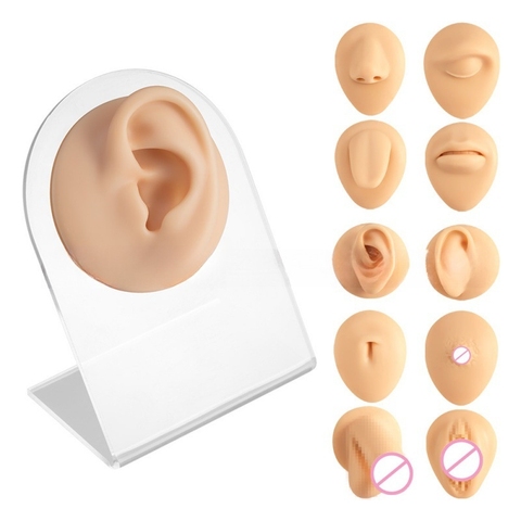 Silicone Model Ear Piercing Tool Training Display Realistic Dark Skin Simulation Human Body Parts Earing Nose Fake Models